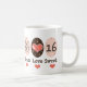 Un amor adolescente de la voluntad nuestro símbolo de paz, el corazón y el número dieciséis rodeó por polk puntos y las estrellas en rosado y marrón con el dulce del amor de la paz de las palabras debajo de él. Un favor lindo del regalo o de fiesta de cumpleaños del dulce 16 perfecto para el adolescente que celebra un décimosexto cumpleaños.