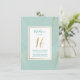 Esta pequeña invitación (4.5"x6.25") moderna y de bonito chica para 16 años presenta oro (Relieve metalizado simulado) y líneas blancas sobre un fondo verde azulado claro. El número "16" está escrito en un tipo de letra de escritura moderno y coincide con las líneas doradas en el fondo. Personalizar esta invitación de moda con el nombre del chica de cumpleaños e información del fiesta. El color de fondo y el tamaño de la invitación se pueden modificar a su gusto.
