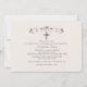 Un fondo liviano y suave de color rosa presenta un florecimiento vintage y una cruz que puede arrastrarse a cualquier lugar, hacerse más grande o más pequeña o eliminarse, haciendo de esto una invitación versátil.La tarjeta es fácil de personalizar con su redacción, fuente, color de fuente y elección de seis tipos de papel.