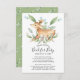 La dulce ducha de bebé de venado trae una tarjeta de libro con un adorable ciervo bebé durmiendo en una cama de flores de hoja y azul y rosa. Voltea nuestro boleto de rifa de pañales para ver una coordinación hacia atrás para un toque extra especial.