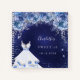 Para una dulce fiesta de 16, 16 cumpleaños. Un fondo azul de medianoche con polvo falso purpurina, un vestido y flores azules. El color azul es desigual. El nombre está escrito con una escritura de estilo con letras a mano moderna. Personalice y agregue su nombre y una fecha. Puede utilizarse como libro de visitas o para tomar notas que planifiquen a su fiesta.