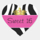 Vestir el sobre de tu dulce invitación a la fiesta de 16 cumpleaños y agregar un poco de diversión con este gran pegatina. Sello pegatina de sobre con forma de corazón, con una huella de cebra en blanco y negro y una franja rosa con lectura de texto, Sweet 16. Una corona dorada añade un acento decorativo.