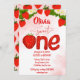 Dulce fiesta de cumpleaños de fresa una invitación editable plantilla descarga digital instantánea, letras de fresa roja chicas de jardín de verano primera fiesta de cumpleaños