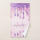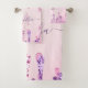 Decore su cuarto de baño con este bonito conjunto de toallas de mujer con mezcla de purpurinas rosados y violetas y un monograma personalizado. Añade fácilmente el nombre y el inicial deseado haciendo clic en la opción "personalizar esta plantilla".