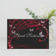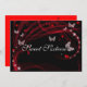 Dulce Invitación rojo, negro y blanco, con rollos rojos, mariposas blancas y estrellas brillantes.