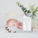 Adorable tarjeta de agradecimiento para bautizo con foto floral en acuarela.