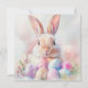 Una tarjeta Happy Easter con un conejito y huevos coloridos. Esta carta es plana y de dos lados.