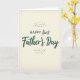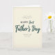 Esta tarjeta presenta un fondo cálido de color blanco apagado con una textura suave similar al papel que se siente cercana y afectuosa, como un momento tranquilo compartido entre seres queridos 👨. Centrada en la parte frontal, la frase "primer Día del Padre" aparece en un estilo de letra suave y fluida en un verde azulado profundo, dando a las palabras una presencia tranquila y afectuosa. Encima de ella, "FELIZ" está en letras mayúsculas en el mismo verde azulado, más pequeño pero firme, creando un titular de apoyo. El espacio entre las dos líneas deja espacio respirable, permitiendo que el mensaje se sienta sin prisas y tierno en lugar de fuerte. Pequeños grupos irregulares de puntos grises apagados están esparcidos ligeramente cerca de la parte superior e inferior, como confeti suave que enmarca las palabras sin robar la atención. La paleta contenida y la disposición simple sugieren un vínculo estable y afectuoso, como la mirada suave de una pareja o el gesto orgulloso de un amigo 👔. La letra en verde