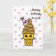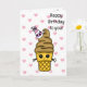Ten un cumpleaños muy dulce es el mensaje de adentro. La carta está llena de helados personalizados al estilo Kawaii.