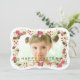 Una celebración de las flores es abundante en esta hermosa foto plana de Pascua que enmarca la foto de tu familia con alegres flores rosadas, melocotones y arándanos, brotes y hojas de bonito, y racimos y bayas ondulados variados, todo ello en un fondo de efecto burlap. El texto oscuro coordinado en cursiva caprichosa añade encanto y diversión. Cada línea puede ser personalizada para satisfacer sus necesidades.