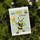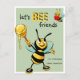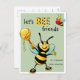 Tarjeta postal de San Valentín para el aula de niños dulces con simpáticas abejas burlonas, un corazón rojo y el adorable dicho 'Seamos amigos ABEJAS'. Todo el texto se puede personalizar fácilmente utilizando la plantilla proporcionada.