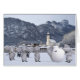 híbridos divertidos entre pingüinos y elefantes divirtiéndose en un agradable día de invierno, jugando en la nieve - uno se quedó atrapado en una enorme bola de nieve. programas de fondo Unken en Salzburgo, Austria