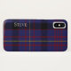 Bonito funda para iPhone X hecho en la grada azul regencia, negro, rojo y amarillo del clan Dundonald tartan. Personaliza el texto blanco, corriendo por el lado izquierdo, para ti mismo o como una gran idea de regalo. Forma elegante de proteger tu equipo electrónico.
