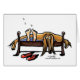 Imagen cómica de un hombre usando su Hound afgano como manta. Diseño original para mercadería de Andie de Off-Leash Art usando su propio ilustracion dibujado a mano. Andie pretende capturar las características únicas de cada raza para que más gente tenga la oportunidad de poseer algo que tenga un dibujo que se parezca a SU perro.