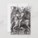 Albrecht Durer Knight Muerte y las invitaciones del diablo. Grabado de madera de 1513. Uno de los grabados más famosos del artista del Renacimiento del Norte, Albrecht Durer, Knight Death and Devil, es una obra alegórica que presenta a un caballero del norte de Europa montado en armadura y a caballo flanqueado por la muerte, que sostiene una copa de hora, y al diablo en la forma de una cabra. El trabajo representa la lucha cristiana contra el tiempo y la tentación. Un gran regalo para los fanáticos de Albrecht Durer, Arte Renacentista del Norte, Grabados de madera y representaciones de caballero y medieval.