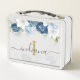 Moderno y polvoriento código floral floral azul escritura manuscrita caja de almuerzo personalizada. Ya sea que se dirija al trabajo, a la escuela o a un picnic, este exclusivo almuerzo combina la funcionalidad con un estilo elegante y artístico que destaca en cualquier entorno.