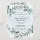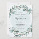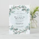 El diseño presenta un elemento foliage de color impreso en tonos verde claro y azul polvoriento. Texturas de lienzos de color verde azul con escritura caligráfica o escritura de tipo. ¡Genial para las celebraciones de sus bodas!
