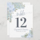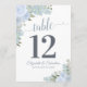 Duste Blue Floral Boda de mesa Número de tarjeta g
