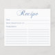 Duste Blue Script Bridal Shower Recipe Tarjeta de