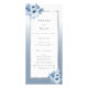 Un programa de bodas floridas de moda. Flores de color agua en tonos azules como decoración. Plantillas para sus nombres, fechas, detalles de la ceremonia y el fiesta. Marco falso plateado y blanco, gradiente azul polvoriento, fondo oscuro, letras de color gris oscuro.