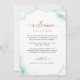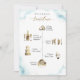 Bienvenido a sus huéspedes con esta magnífica tarjeta con una línea de tiempo elegante en la parte delantera y el mensaje de bienvenida en la parte trasera. Línea de tiempo con íconos de acuarela en hermosos tonos dorados. Delante y atrás, con delicadas manchas de color azul polvoriento con delgadas espinillas doradas. Detalles modernos de caligrafía escrita a mano en oro. Capacidad para "agarrar y mover" imágenes de icono de línea de tiempo a un orden diferente para adaptarse a su evento seleccionando más personalizar.