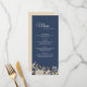 El menú boda del Dusty Blue Autumn Boho combina un ambiente antiguo con un estilo retro de flor silvestre bohemia. Las elegantes y neutras flores de color beige sobre el polvoriento fondo azul marino, con su elegante tipografía caligráfica, permiten celebrar matrimonios formales pero salvajes y florales de estilo vintage.