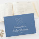 Captura recuerdos de tu ducha de bebé con este Dusty Blue Bow Personalizado Baby Shower Guest Book. Con un encantador diseño estético de coqueta con una proa azul, este libro de visitas permite a los huéspedes dejar sus buenos deseos y mensajes para la nueva madre. Personalízalo con el nombre de la futura madre por un toque único. Introduzca la Herramienta de diseño de Zazzle para una personalización adicional.
