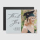 Dusty Blue Elegant Script Minimalista Graduación De Foto Gracias Magnética Tarjeta. "Gracias" a tu familia y amigos con esta hermosa tarjeta de agradecimiento. Todos los textos están preorganizados para que puedas personalizarlos fácil y rápidamente con tus propias palabras.