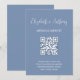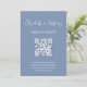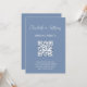 Esta invitación de sitio web de bodas con código qr minimalista presenta un elegante guión manuscrito sobre un fondo azul polvoriento. Para detalles sobre su sitio web de bodas y rsvp en línea. El código de color de este tono azul polvoriento es #7891B2. En caso de que el diseñador de su sitio web de bodas lo necesite.
