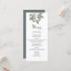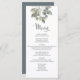 Hermoso follaje azul de eucalipto con la tarjeta del menú de la recepción de diseño floral del bebé. Esta plantilla de tarjeta de menú presenta un hermoso diseño vegetal follaje con hojas botánicas.