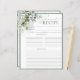 Diseñada para acompañar a nuestro Binder de Receta Bridal Shower, que forma parte de una Suite de Invitación a la Ducha Nupcial a la par, esta tarjeta de receta con hojas botánicas y eucaliptos verdes y exuberantes, bordeada por un eucalipto pálido verde gris azul (cuidadosamente digitalizado) y caligrafía con guijarros con letras de bonito. Hay muchas líneas para la receta, y la parte trasera coincide con la parte delantera, así que cada huésped puede darle dos recetas a la novia. También se ha dejado un margen en la página para acomodar el margen. HAGA CLIC AQUÍ para el Binder de Recetas de coordinación: https://www.zazzle.com/collections/elegant_eucalyptus_green_botanical_bridal_shower-119330045467288535 Contacte con el diseñador para obtener productos coincidentes. Copyright Elegant Invita, todos los derechos reservados.