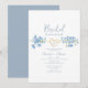 Invite a los huéspedes a celebrar la futura boda con nuestra invitación a la ducha azul con flores Boho Floral Dusty Blue Bridal. Con sus sofisticadas flores perwinkle y su encantador monograma de corazón de cuerda dorada, personalizado con las iniciales de la novia y el novio, esta invitación exuda elegancia moderna. El azul polvoriento es la combinación perfecta entre estilo bohemio y refinamiento. Con esta elegante invitación a la moda, podrá disfrutar de una inolvidable ducha de novias.