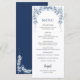 Dusty Blue Floral Wedding Menu | Elegant Bow Roses