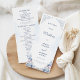 This elegant wedding program fan features soft dusty blue watercolor florals, delicate blush accents, and graceful vintage scrollwork for a timeless and romantic look. The front welcomes guests with a refined floral layout, while the reverse side provides space for ceremony details and wedding party information in a clear and polished format. Its airy blue palette suits classic, formal, garden, and traditional wedding celebrations beautifully. A lovely choice for couples who want coordinated ceremony stationery with a soft, sophisticated finish.