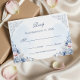This elegant RSVP design features soft dusty blue watercolor flowers, delicate blush accents, and refined French garden scrollwork. The classic layout creates a timeless and romantic look that complements formal, vintage-inspired, and traditional wedding celebrations. Its airy floral styling feels graceful and polished, making it a beautiful choice for coordinating with a full dusty blue wedding stationery suite. The ornamental details and soft color palette add a sophisticated finish that works especially well for spring and summer weddings.