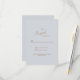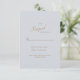 Tarjeta de respuesta RSVP de Dusty Blue Wedding. Cena y baile. Fuente moderna. Texto dorado.