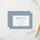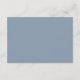 Este diseño sencillo y minimalista presenta el texto en coprente gris y cursiva en un rectángulo blanco, enmarcado por una delgada línea blanca sobre un fondo azul polvoriento. El reverso es azul polvoriento sólido.