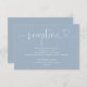 Esta elegante tarjeta de boda de guiones de corazón azul polvoriento se puede personalizar con su información en la tipografía de moda. Diseñado por Thisisnotme©
