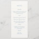 Esta tarjeta de menú minimalista de moda presenta un conjunto de fuentes contemporáneas en azul polvoriento, con un fondo de marfil de moda. Incluye 4 secciones de comidas y bebidas. La plantilla también incluye un monograma de pareja en una combinación de blues polvoriento. Hay más colores disponibles en la misma colección.