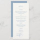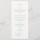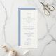Esta tarjeta de menú monogramada de moda presenta un conjunto de fuentes contemporáneas en azul polvoriento, contra un fondo de marfil de moda. El mismo color azul se repite en la parte posterior de la tarjeta. La plantilla incluye 4 secciones de comidas y bebidas. Hay más colores disponibles en la misma colección.