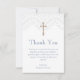 Gracias a sus seres queridos por su presencia y por los reflexivos regalos en el día especial de su hijo con nuestras hermosas tarjetas de agradecimiento por su bautismo. Con una cruz de oro sobre un delicado efecto de encaje sobre un fondo blanco y una polvorienta y elegante letra azul personalizable, estas tarjetas son la manera perfecta de expresar su gratitud de una manera elegante y sofisticada. La impresión del efecto de encaje de borde superior sobre un fondo blanco añade un toque de elegancia y se complementa con las polvorientas letras azules del personalizable, haciendo de cada tarjeta una expresión única y personalizada de su apreciación. El reverso de la tarjeta también está en un bello azul polvoriento para añadir un toque de color y realzar el diseño general. Con la opción de usar el saludo suministrado o el personalizar propio, estas tarjetas proporcionan un toque personal que hará que sus seres queridos se sientan apreciados y especiales.