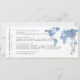 Embarque Pase Salven las tarjetas de billetes de avión de fecha en un elegante diseño moderno con un polvoriento diseño de mapas de viajes de color azul medio azul. Todos los colores de texto y fondo son editables para que pueda crear su propio diseño usando esta plantilla para una tarjeta de embarque única diseñada con un boda de boda o tema de viaje o celebración de renovación de votos en mente. Visita las colecciones del Diseñador de Destinos de Uva de Papel para coordinar elementos.