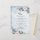 Dusto menú boda botánico floral azul con elegantes ramos de azul marino / azul turbio, blanco , rubor , rosa de melocotón y hojas de eucalipto verde salado. Comuníquese conmigo para obtener ayuda sobre la personalización o si necesita cualquier otro producto con este diseño.
