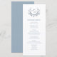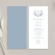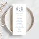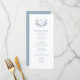 Elevar la recepción de bodas con esta carta de menú boda, con una caligrafía simple y elegante y un refinado monograma de novias y novios. Diseñado en un elegante azul polvoriento, este patrón de la cena de la recepción muestra un motivo clásico de laurel de corona con delicadas hojas de vegetación, añadiendo un toque atemporal y sofisticado a su mesa de fiesta de ensayo. El diseño tipográfico tradicional y las iniciales y ampersores elegantes crean una estética personalizada y elegante. Perfecto para una configuración de boda de moda