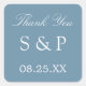 Dusty Blue Wedding Favor Gracias Pegatina, por favor personaliza con las iniciales de la pareja y la fecha del boda, usando la plantilla de personalización en línea antes de pedir.