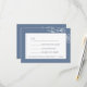 White line art cherry blossoms on a dusty blue background. Elegant wedding RSVP card. Botanical hand drawn design.