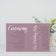 Añade color y detalles a los asientos de la ceremonia de boda, ya que da la bienvenida a sus invitados con programas de ceremonias personalizados que se adaptan a su estilo y temática boda. Las texturas suaves de papel de gama alta saludan a sus amigos y familiares más cercanos mientras les informan de los emocionantes eventos que su boda celebrará. Felicidades por tu compromiso. Disfruta de planear a tu boda con la pequeña Sra.