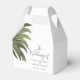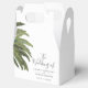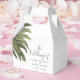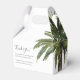 Un conjunto único de cajas de regalo blancas con temática de palmera, diseñadas específicamente para tu futuro boda en la hermosa costa, isla o incluso un evento de verano. En la parte delantera están los detalles de su boda y su único mensaje de agradecimiento a sus bodas en el otro lado.