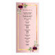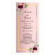 Un programa de bodas elegante y bohemio al estilo boho. plumas acuáticas, rosas, flores en burdeos. Plantillas para sus nombres, fechas, detalles de la ceremonia y el fiesta. Un marco de oro falso y un fondo de color negro, rosa polvoriento de moda, de aspecto metálico falso.