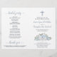Este hermoso programa está diseñado para una ceremonia católica. Presenta un diseño rústico de moda boho con rosas acuarelas pintadas a mano, flores, hojas de eucalipto y vegetación en tonos polvorientos azules y verdes. Hay un crucifijo o cruz, con una elegante caligrafía de escritura para los nombres de las parejas y títulos. El interior ha extendido el espacio para todos los detalles de la ceremonia, mientras que la parte trasera tiene información sobre la fiesta de la novia junto con una breve nota de agradecimiento. Hermosa manera de dar la bienvenida a sus invitados y facilitarles el seguir con la ceremonia. Por favor, tenga en cuenta que los programas se envían como hojas planas de papel, necesitarás doblarlas tú mismo.